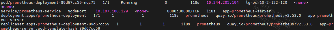 1. 部署Prometheus,回显信息如图 4.1 所示。