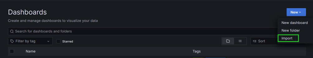 点击Dashboards图标,点击New,选择Import,如图 6.4 所示。