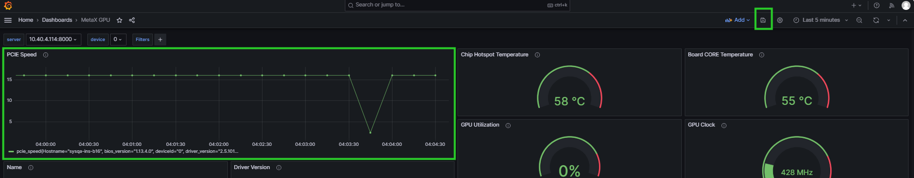 查看 mx-exporter/config/default-counters.csv 中的指标信息,根据实际情况在Grafana中添加想要监控的指标,如 pcie_peed。