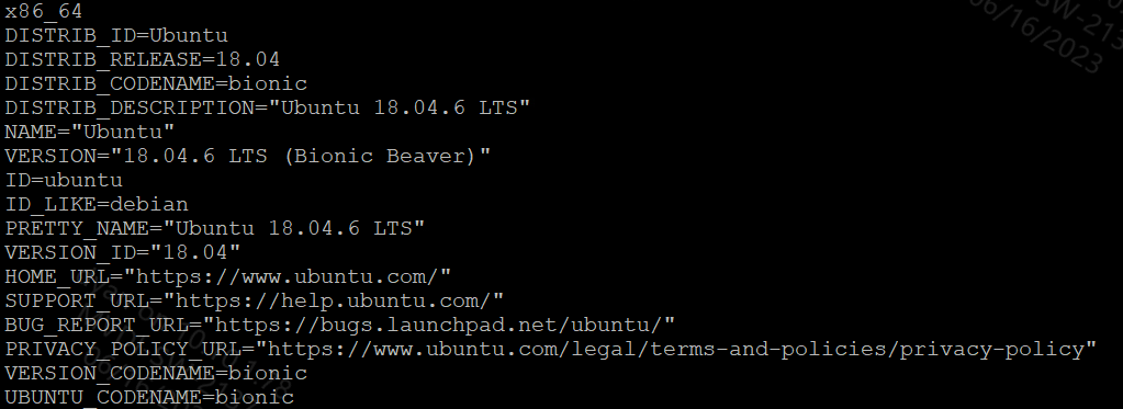 例如,机器是64位系统(x86_64),并且安装了Ubuntu 18.04的操作系统,回显信息如图 2.1 所示。