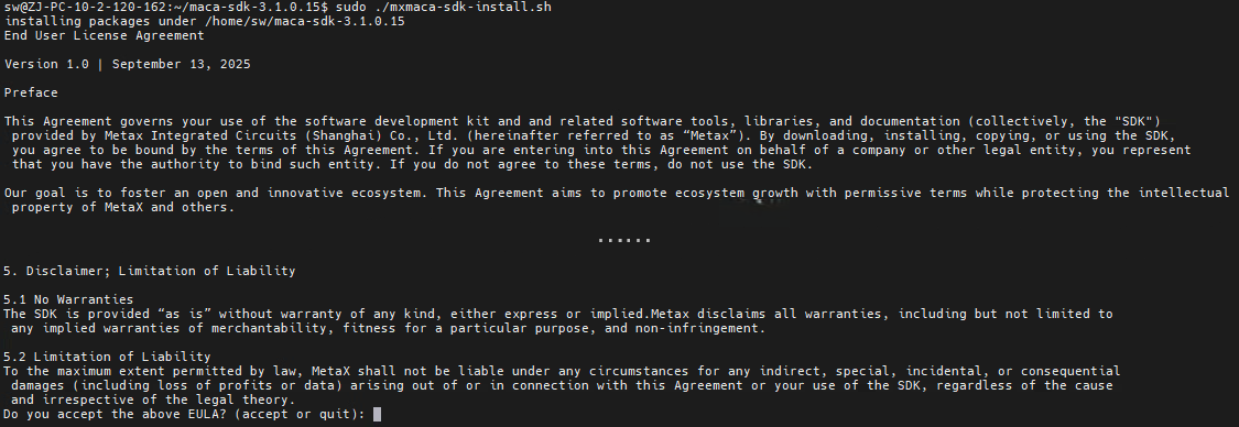 图 2.4 MXMACA SDK EULA接受或退出