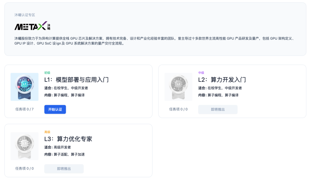 中级 L2「算力开发入门」,面向在校学生和中级开发者,覆盖算子编程与算子编译方向,将在后续推出。